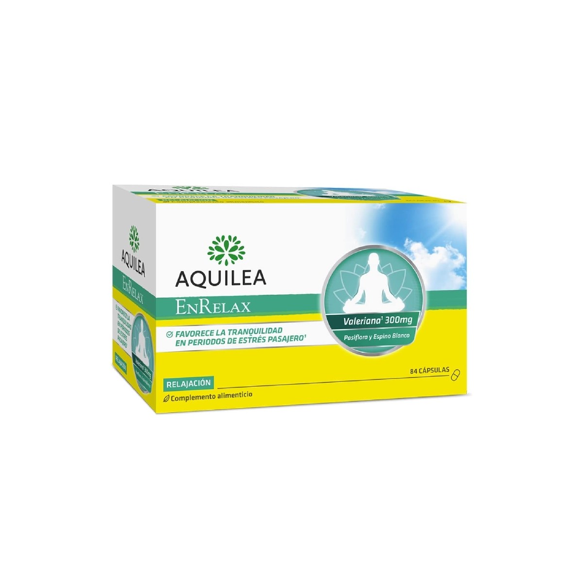 Aquilea Enrelax facilita la relajación, gracias a la combinación de sus ingredientes activos como valeriana, pasiflora y espino blanco.