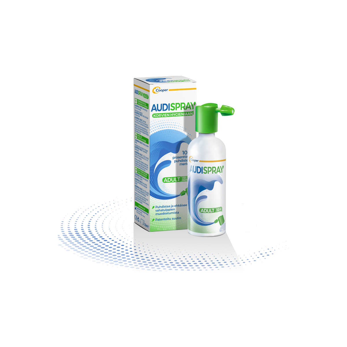 Audispray Adult es un spray auricular que previene los tapones de cerumen a partir de 12 años. Compuesta de agua de mar controlada microbiológicamente, la solución Audispray limpia los oídos suavidad gracias a su boquilla patentada que limita el riesgo por exceso de presión.