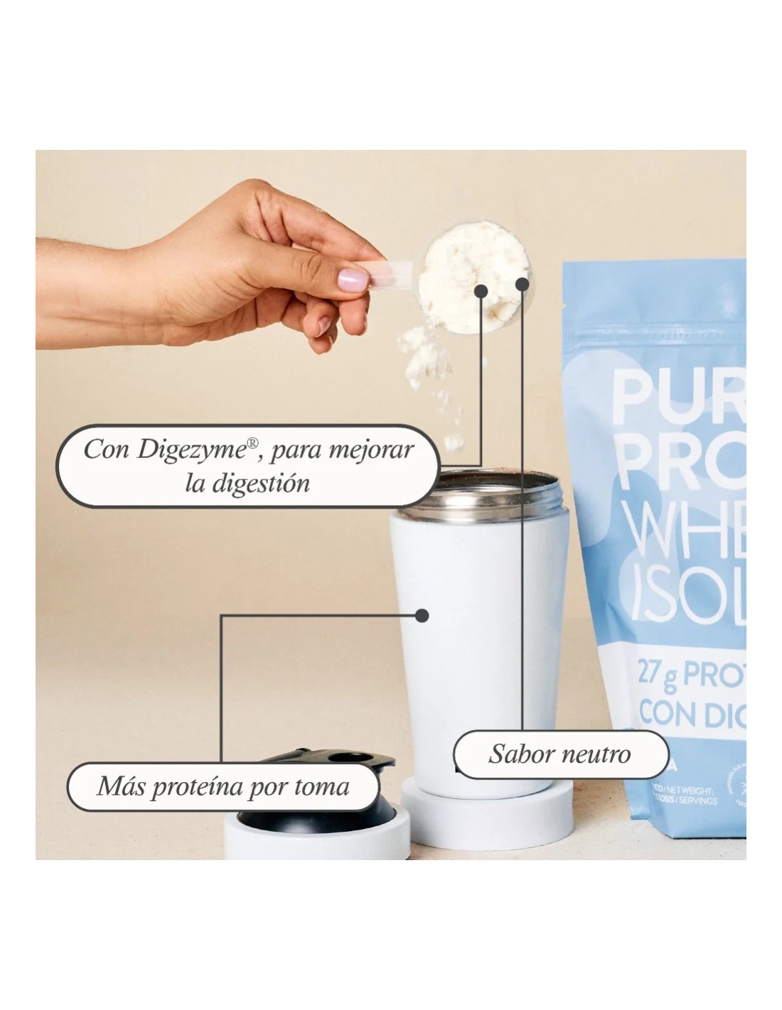 ✅ Con enzimas digestivas (Digezyme®). Las Pure Protein contienen lactosa, al provenir de la leche de la vaca.
