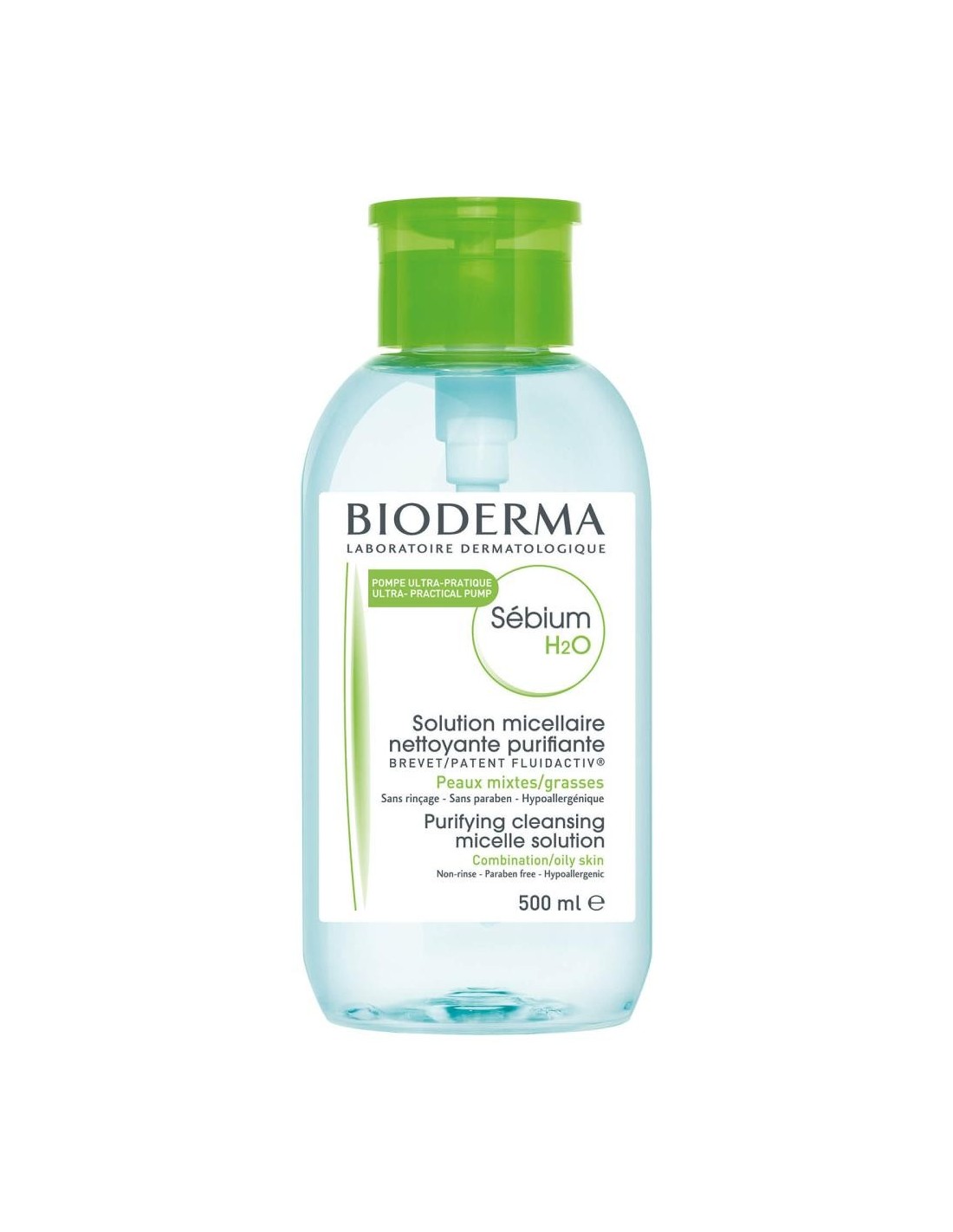 Bioderma Sebium H2O Solucion Micelar 500 ml: Agua micelar dermatológica para piel mixta grasa y acneica que limpia, desmaquilla y purifica la piel.