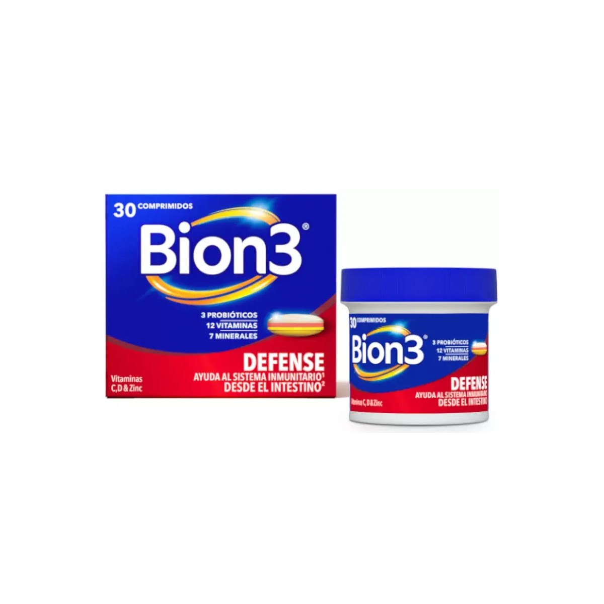 Bion 3 Defense 30 comprimidos: Los nuevos comprimidos Bion3 Defense han sido formulados específicamente con una mezcla única de Probióticos, Vitaminas y Minerales para ayudar al intestino y mantener sus defensas naturales.