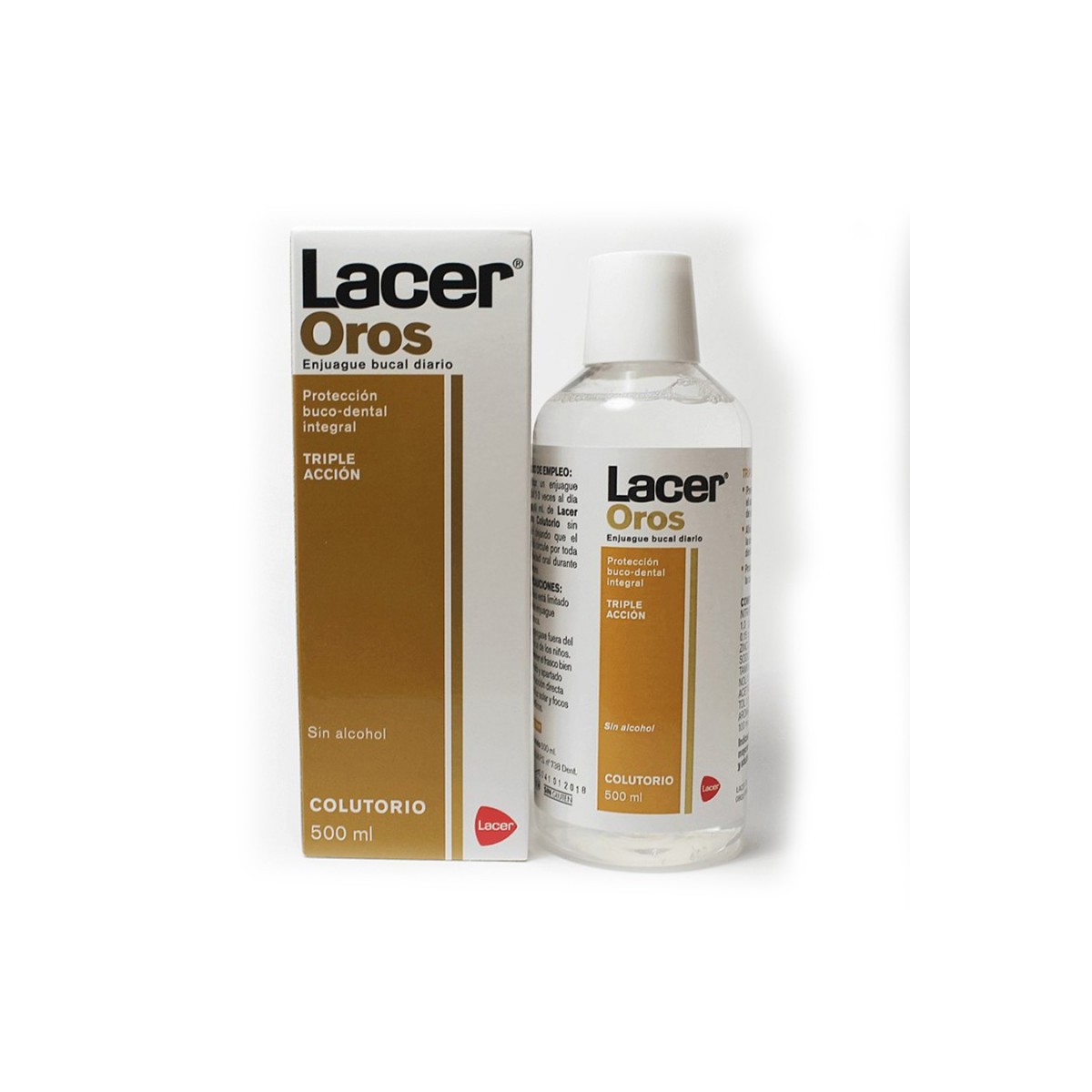 Colutorio Lacer Oros 500 ml: Enjuague bucal intensivo que ofrece una protección bucodental completa. Este colutorio evita el deterioro de las encías y acaba con la sensibilidad, ofreciendo una correcta salud bucal.