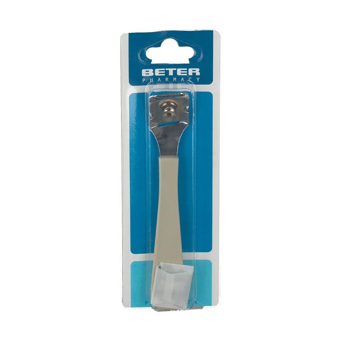 Cortacallos Beter con 1 hoja: Indicado para eliminar durezas y callosidades de los pies. Su cabezal exclusivo incluye un tornillo regulador del grosor del corte, proporcionando la máxima eficacia y seguridad. Utilizar solo con las hojas de recambio exclusivas Beter.