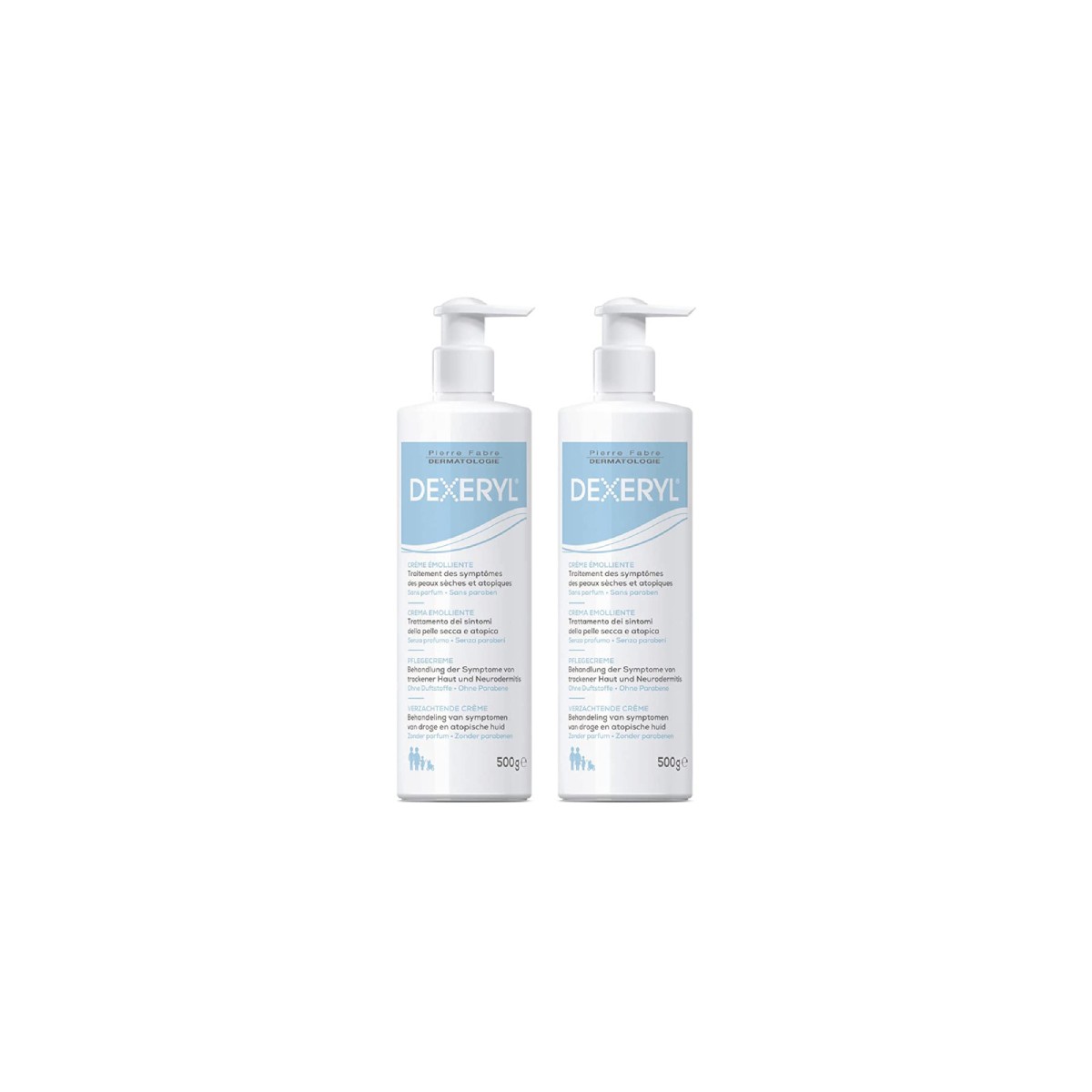 Duplo Dexeryl Crema 500+500 ml: Formulada especialmente para el cuidado de las pieles secas de toda la familia, Dexeryl Crema Emoliente es un producto sanitario que está indicada para el tratamiento de los signos y síntomas de la sequedad de piel (xerosis) en particular en varias afecciones cutáneas (tales como dermatitis atópica, ictiosis...) y eritema inducido por radioterapia. Desde el nacimiento.