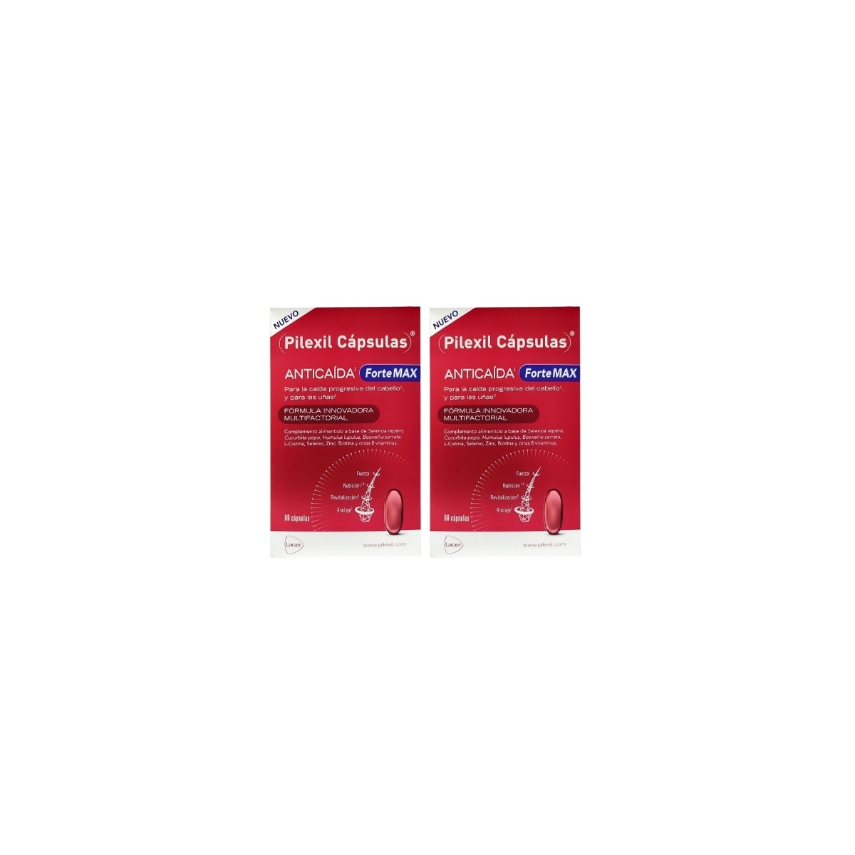 Duplo Pilexil Anticaida Fortemax 60+60 capsulas: Es un complemento alimenticio con una fórmula innovadora multifactorial que actúa a través de 4 complejos: Complejo 5 alfa, Complejo Revitalizante, Complejo Nutricional y Complejo Antioxidante, para fortalecer, nutrir, revitalizar, y mejorar el anclaje del folículo.