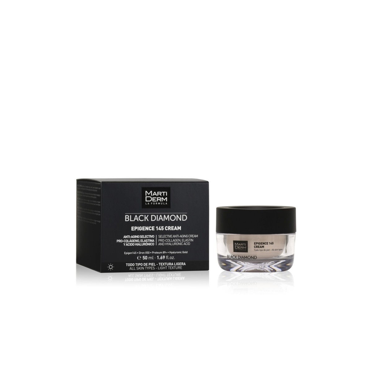 Epigence 145 Cream Martiderm 50 ml está diseñada para reprogramar la piel y retrasar los signos del envejecimiento. Sus ingredientes inteligentes actúan a tres niveles: reactivan la capacidad de regeneración de las células, aumentan la producción de ácido hialurónico, colágeno y elastina, y aumentan la firmeza y elasticidad cutánea. Además, contiene vitaminas encargadas de iluminar la piel y unificar el tono.