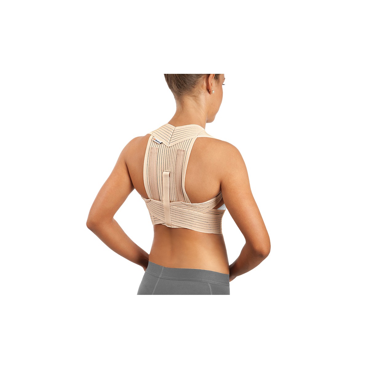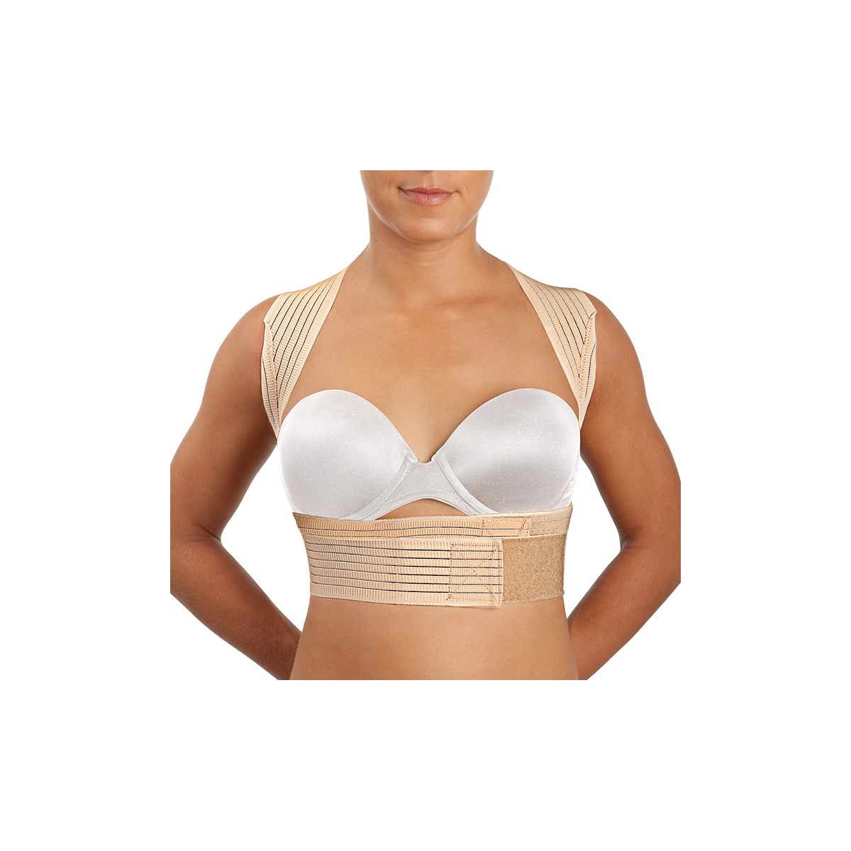Espaldera Transpirable Reforzada ET220: Banda ancha dorsal de tejido elástico multibanda transpirable reforzada con dos ballenas semirrígidas paravertebrales. Dos bandas elásticas superiores que se prolongan sobre los hombros pasan por debajo de las axilas, zona donde está reforzada con doble capa de tejido para una mayor comodidad de uso. Dichas bandas cruzan por la espalda y cierran en el abdomen permitiendo ejercer una tracción gradual y personalizada de la espalda mediante la retropulsión de los hombros hasta reducir la perjudicial postura cifótica.