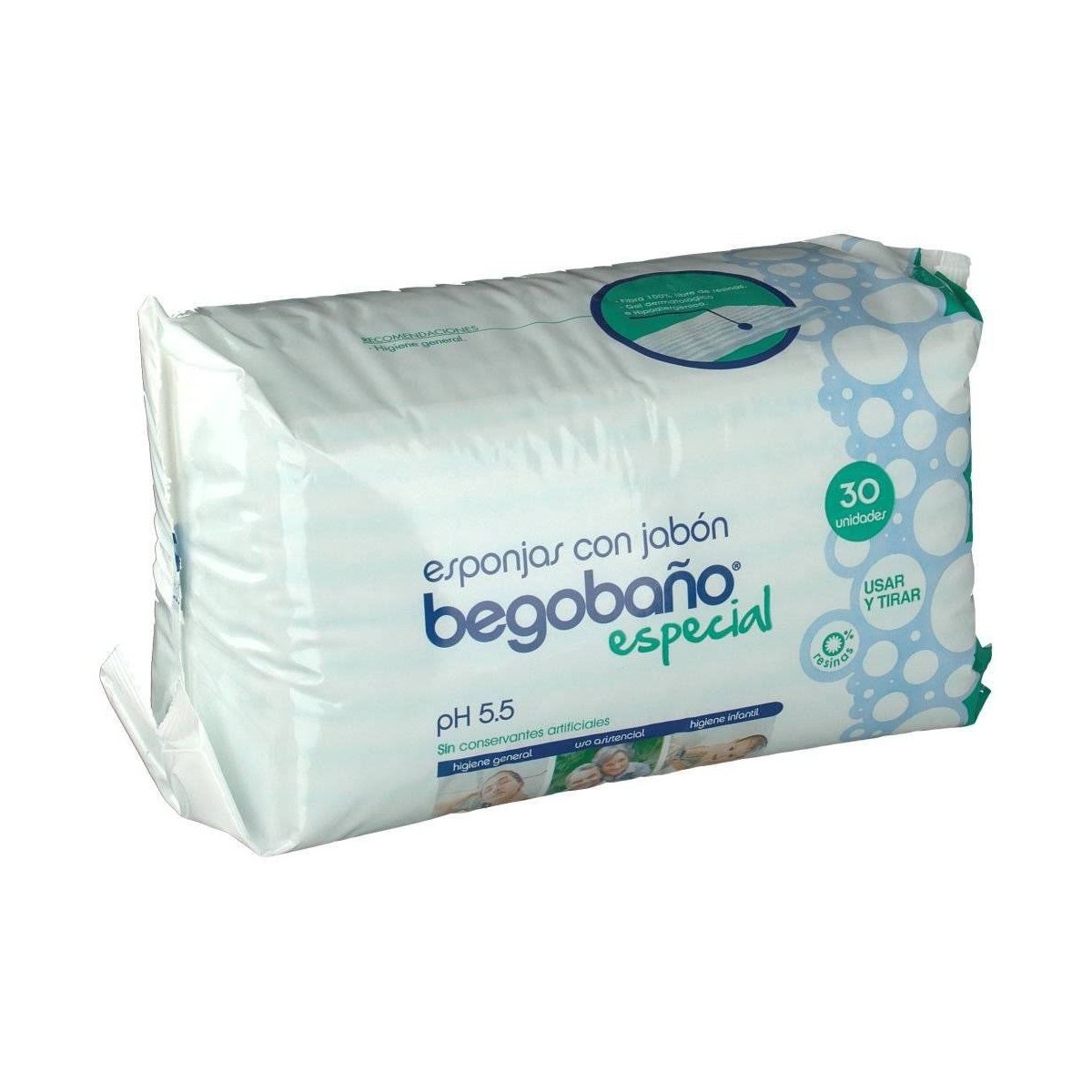 Esponja Jabonosa Begobaño 30 unidades: Esponja con jabón de un solo uso para una correcta limpieza e higiene de la piel.