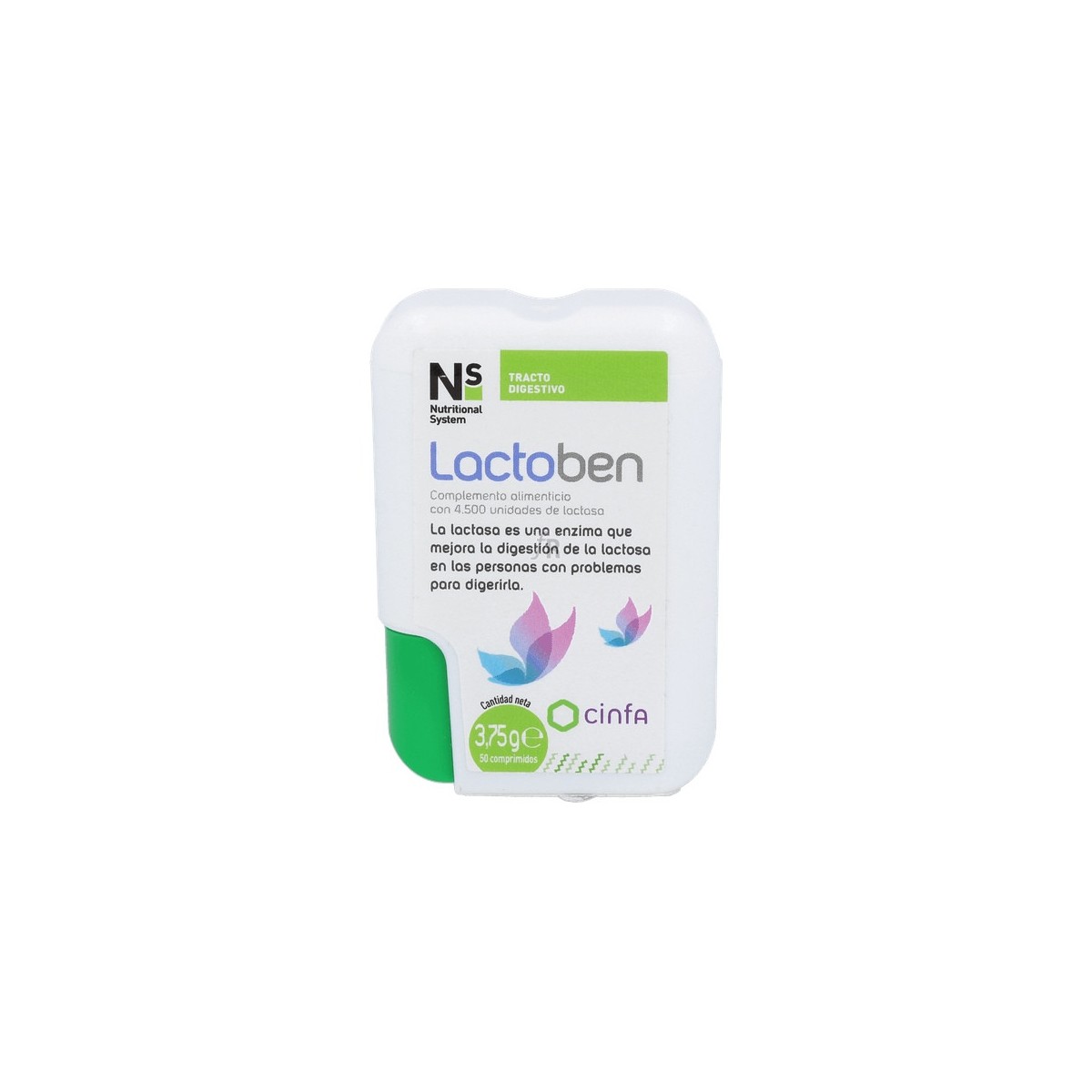 Ns Lactoben compuesto por comprimidos que contienen 4500 FCC de Lactasa, útiles para personas con intolerancia a la lactosa de leve a moderada.