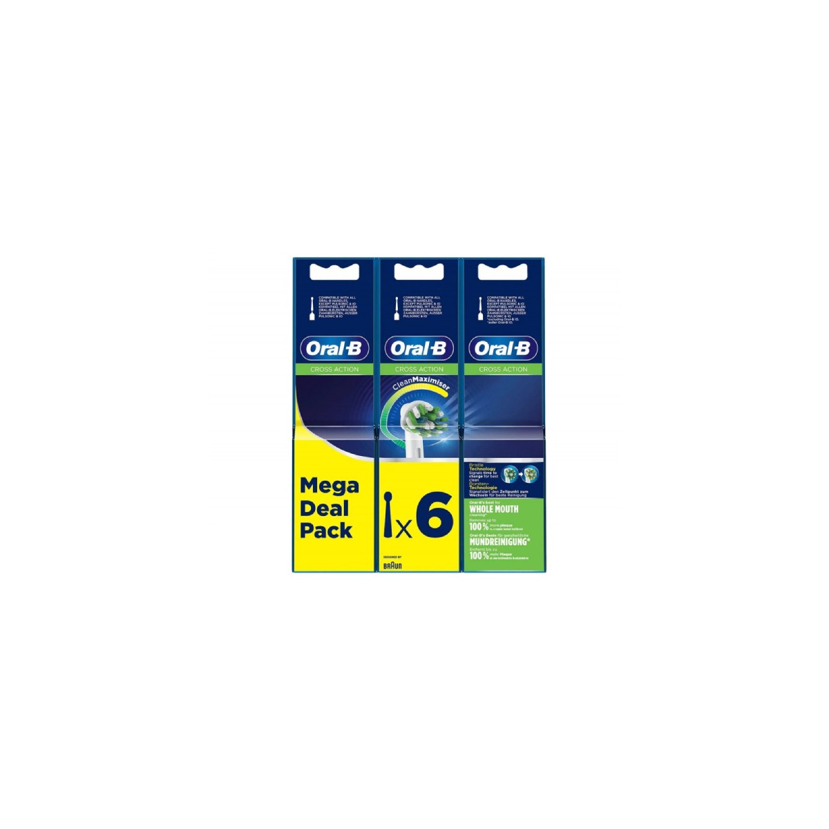 Oral B Cross Action Recambio Cepillo Eléctrico 6 unidades cuenta con filamentos dispuestos en un ángulo perfecto de 16 grados para atacar la placa y eliminar hasta un 100 % más que un cepillo de dientes manual normal.