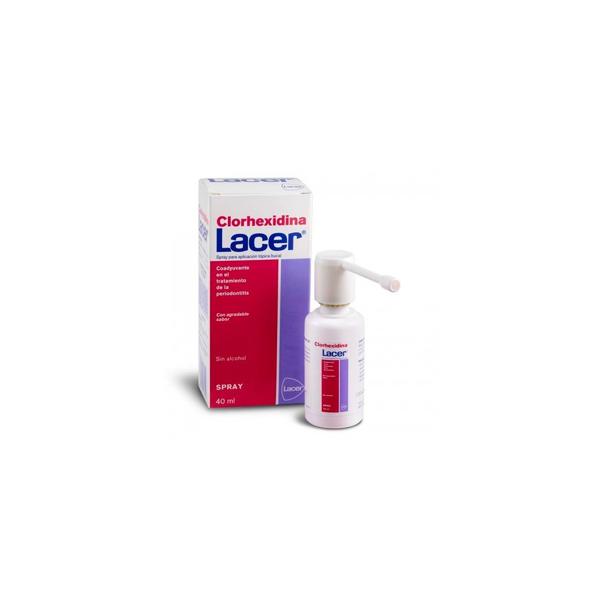 Spray Clorhexidina Lacer 40 ml: Clorhexidina LACER es un eficaz antiséptico de amplio espectro frente a los microorganismos de la placa bacteriana y con sabor agradable. Su acción es rápida y mantiene su efecto durante un largo período de tiempo, evitando la posible recolonización bacteriana de la cavidad oral. La Clorhexidina LACER se une fuertemente a diversas superficies bucodentales formando así un sistema de liberación sostenida.