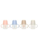 Este biberón con asas incluye un vaso protector para una mayor higiene.