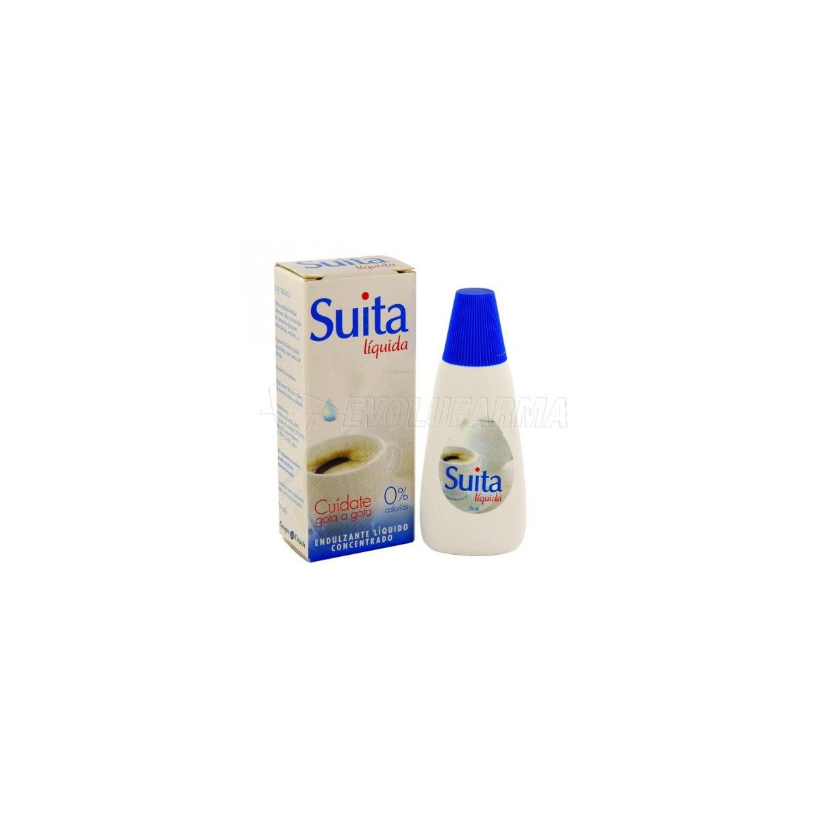 Suita Líquida es un edulcorante líquido concentrado que endulza bebidas calientes, frías y todo tipo de alimentos (yogures, macedonias, cereales...) Contiene sacarina sódica y sorbitol.